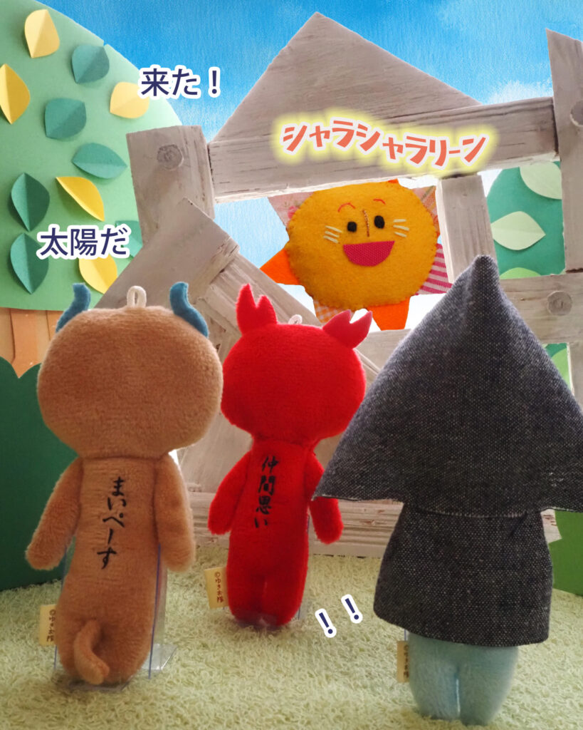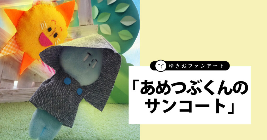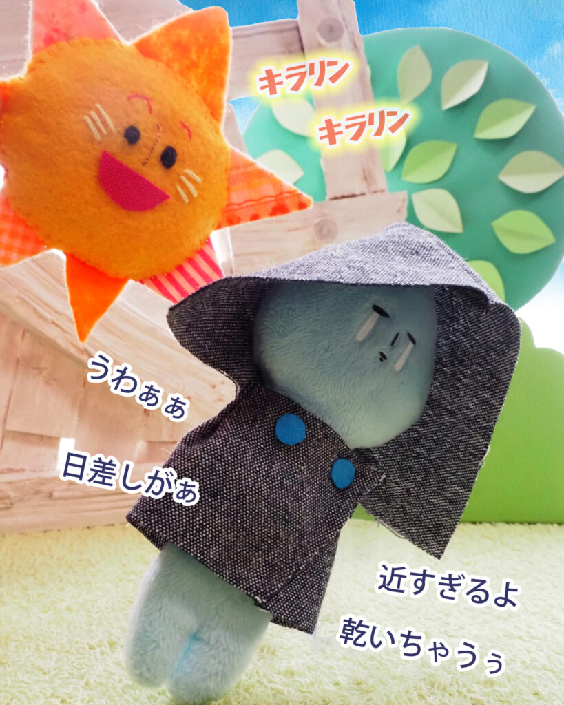 The sun coat was carefully shaped to match Raindrop-kun’s head,with a nice sharp point at the top. (^^)