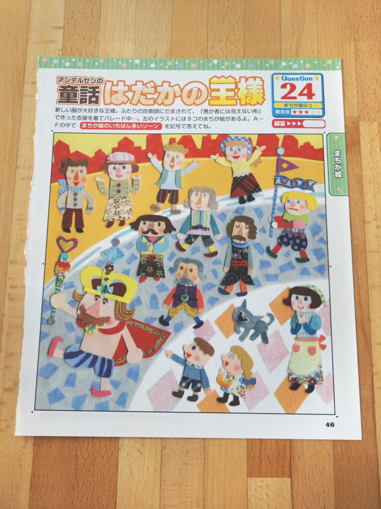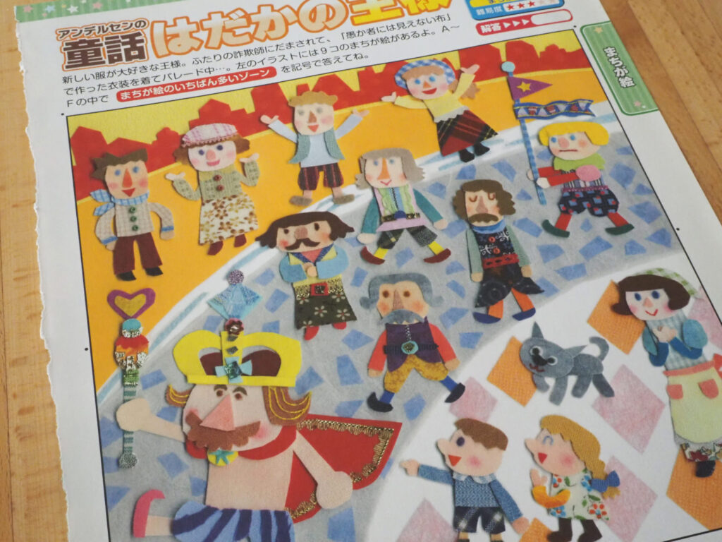 This is a collage illustration inspired by Andersen’s fairy tale “The Emperor’s New Clothes,” created for a puzzle magazine.