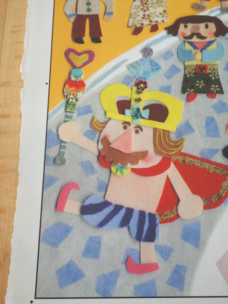 アンデルセン童話「はだかの王様」をモチーフに制作した、貼り絵イラストです。
