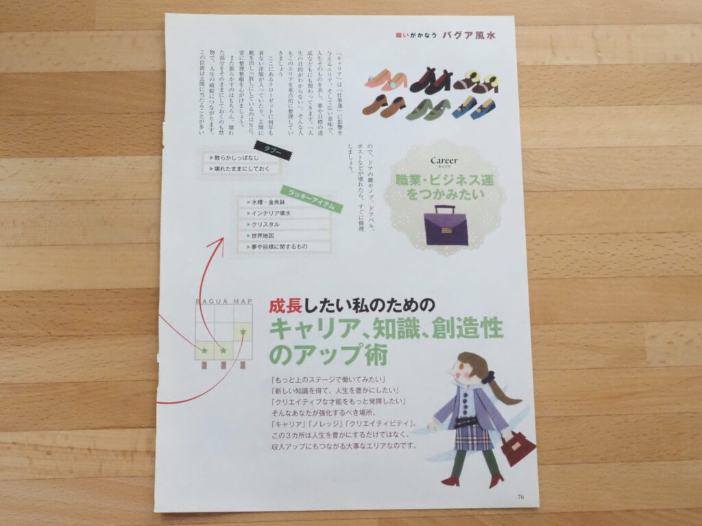 この誌面は、雑誌のバグア風水特集の中の「職業・ビジネス運」のページです。