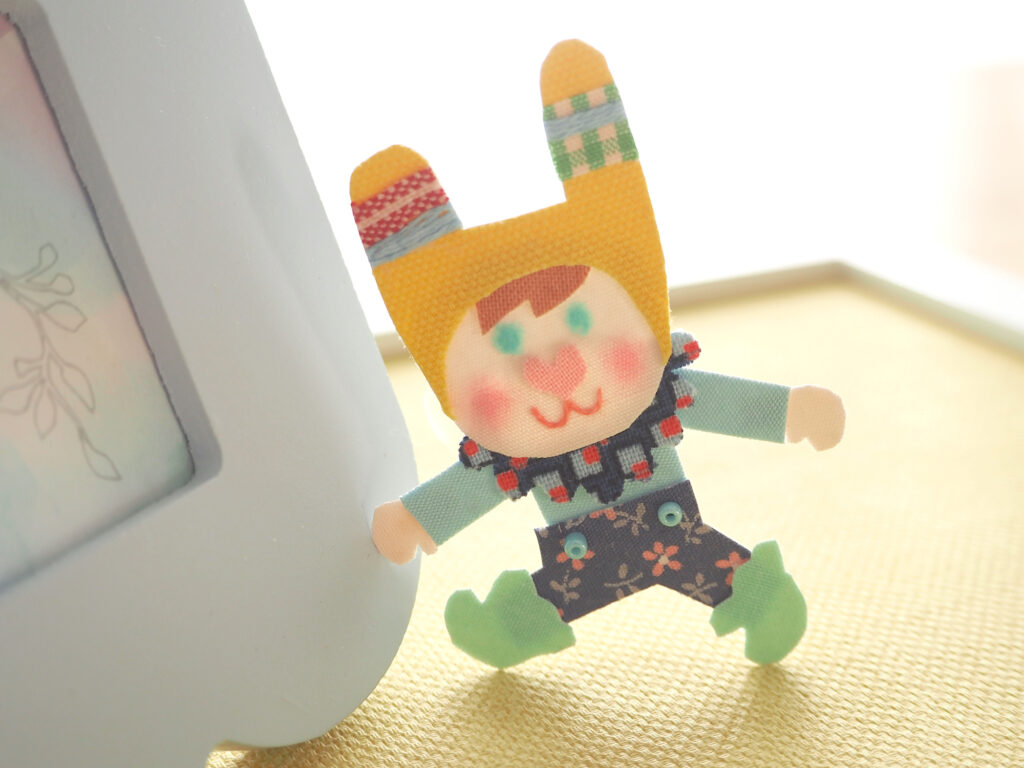 自分でも久々に見たのですが、柄布の合わせ方や、耳のところの模様に糸の線を加えているところ、長靴の口がなみなみのラインになっているところなど、好きだなぁと思います。