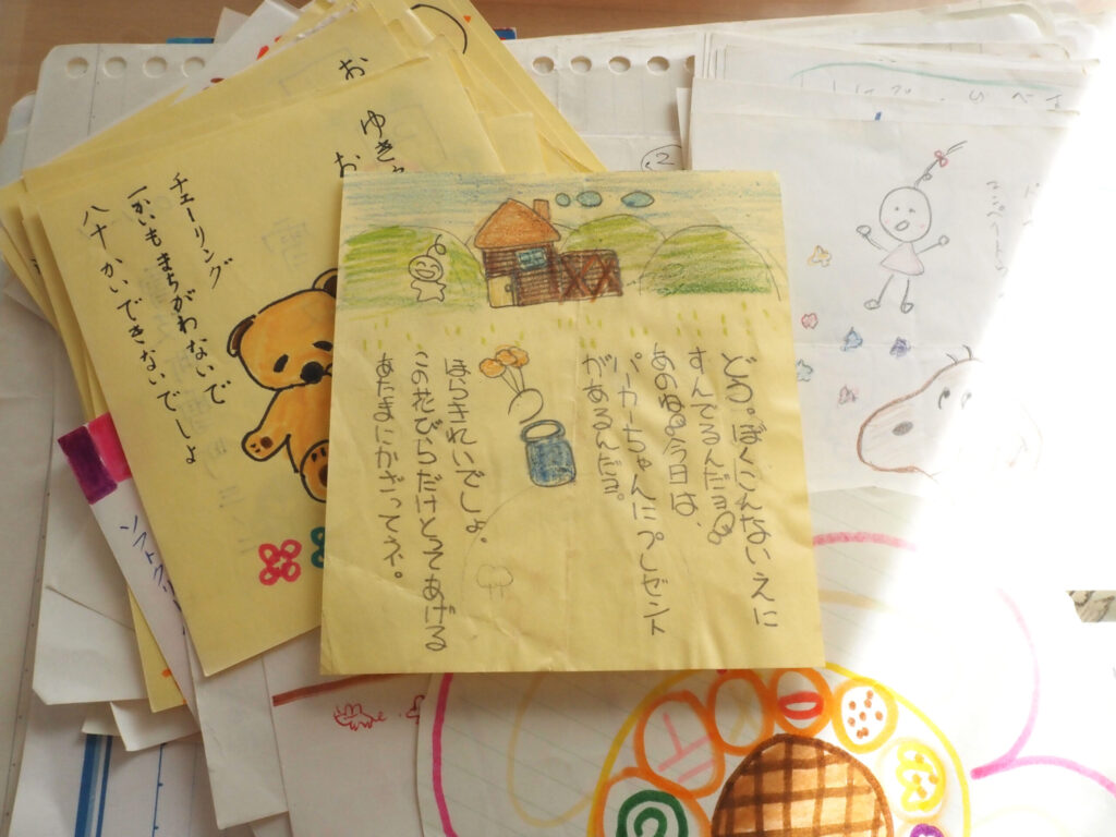 なんと、私に付き合って、父や母も絵付のお話やお手紙をよく描いてくれました。